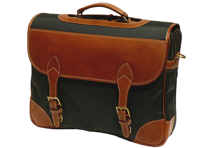 Our double buckle front strap closures allow for securing all your important files, documents, and laptop. A leather flap folds over the two spacious zip compartments that also feature a front panel slide pocket. Additional interior zip accessory file pocket and exterior back panel pocket also make for handy use. Complete with adjustable leather shoulder strap.